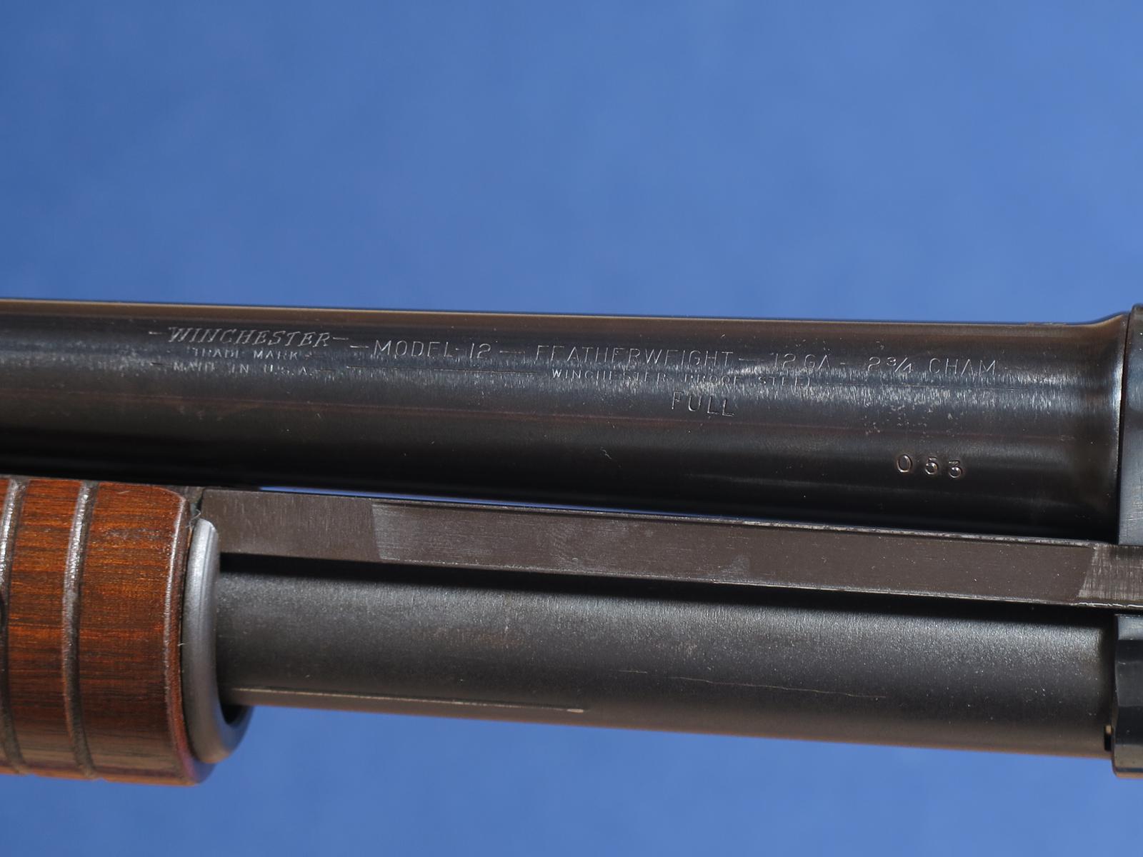Winchester 12 Featherweight 12ga. 30 inch barrel. Full choke. SN 1813053F. 14 1/8 LOP. Original finish. Excellent blue finish. Wood shows a few handling marks.