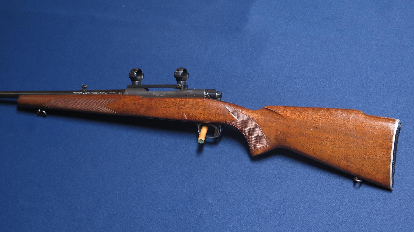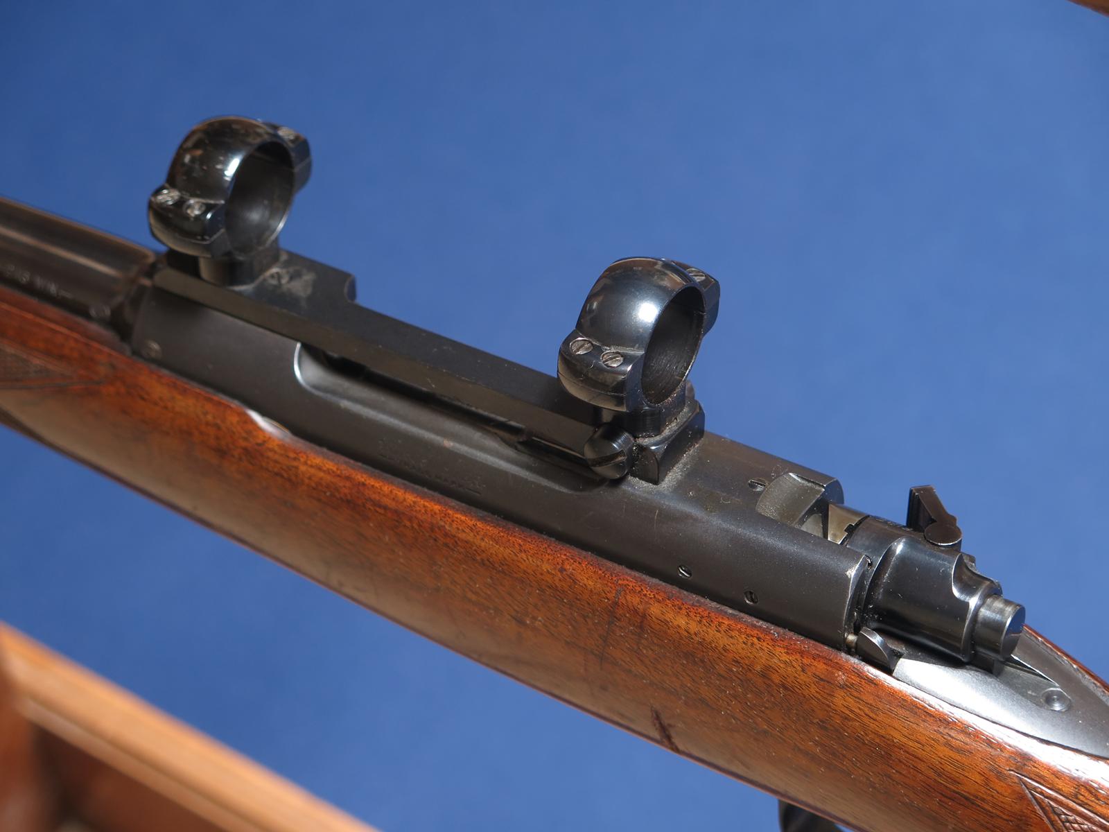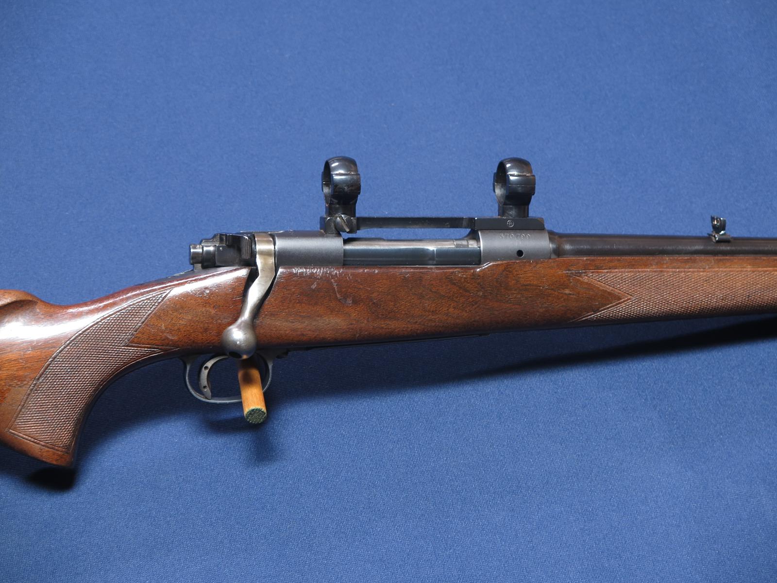 Winchester 70 Featherweight 243. 1956 mfg. 22 inch barrel. Redfield scope base and rings. Original finish. 97% blue. Wood shows handling marks. Excellent bore.