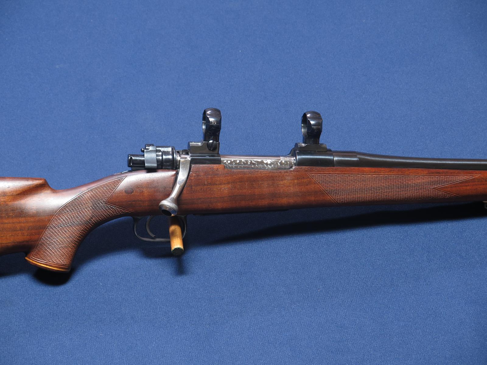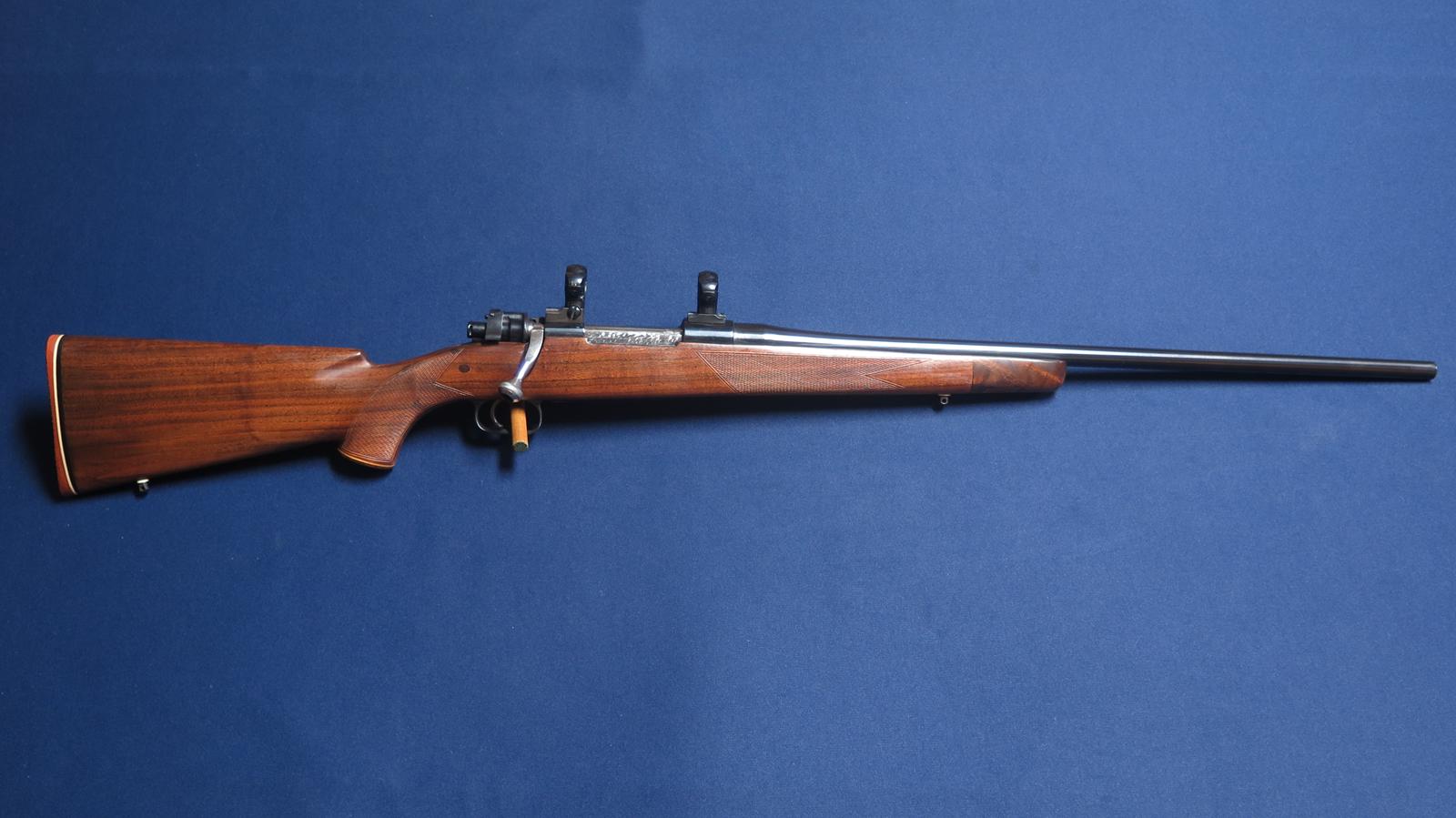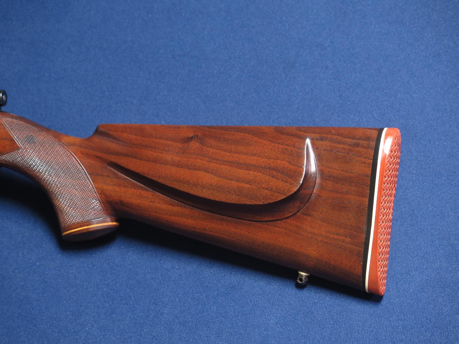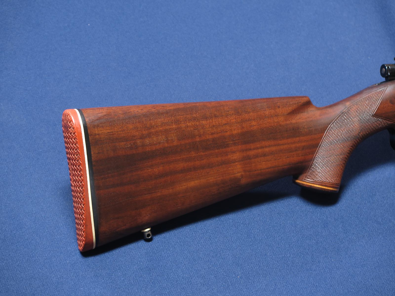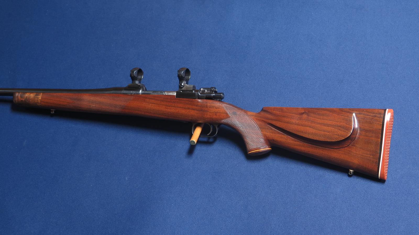 Mauser custom rifle in 35 Whelen. 24 inch barrel. Checkered wood. Pachmayr thin recoil pad. Wood grip cap and forend tip. Cheek piece. Excellent condition. With scope bases and rings.