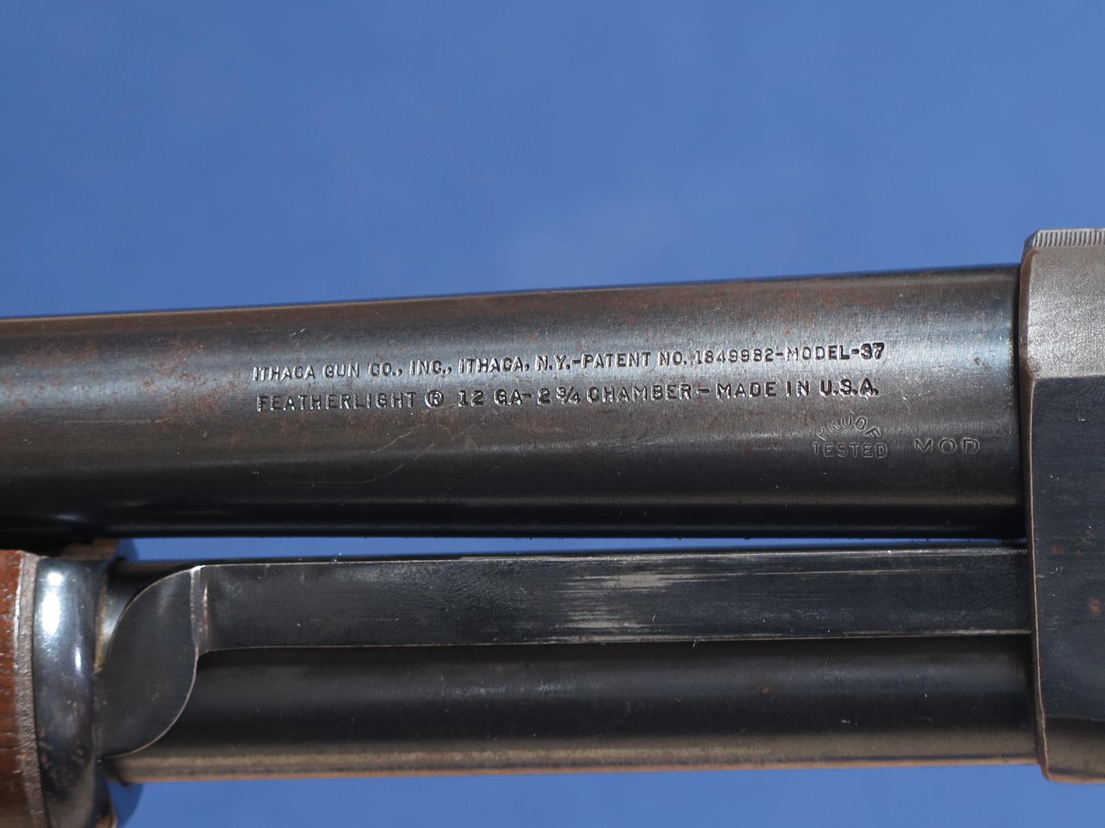 Ithaca 37 Featherlight 12ga. 28 inch barrel. Mod choke. SN 490,48X. 2 3/4 chambers. 14 1/8 LOP. Original finish showing some hunting use. Excellent bore.