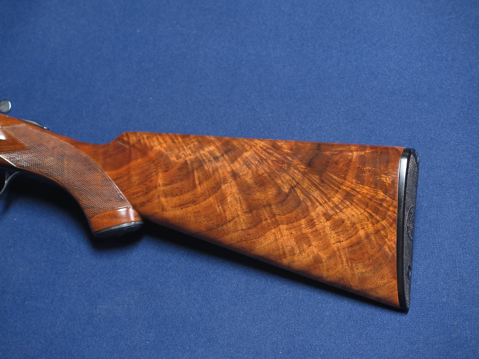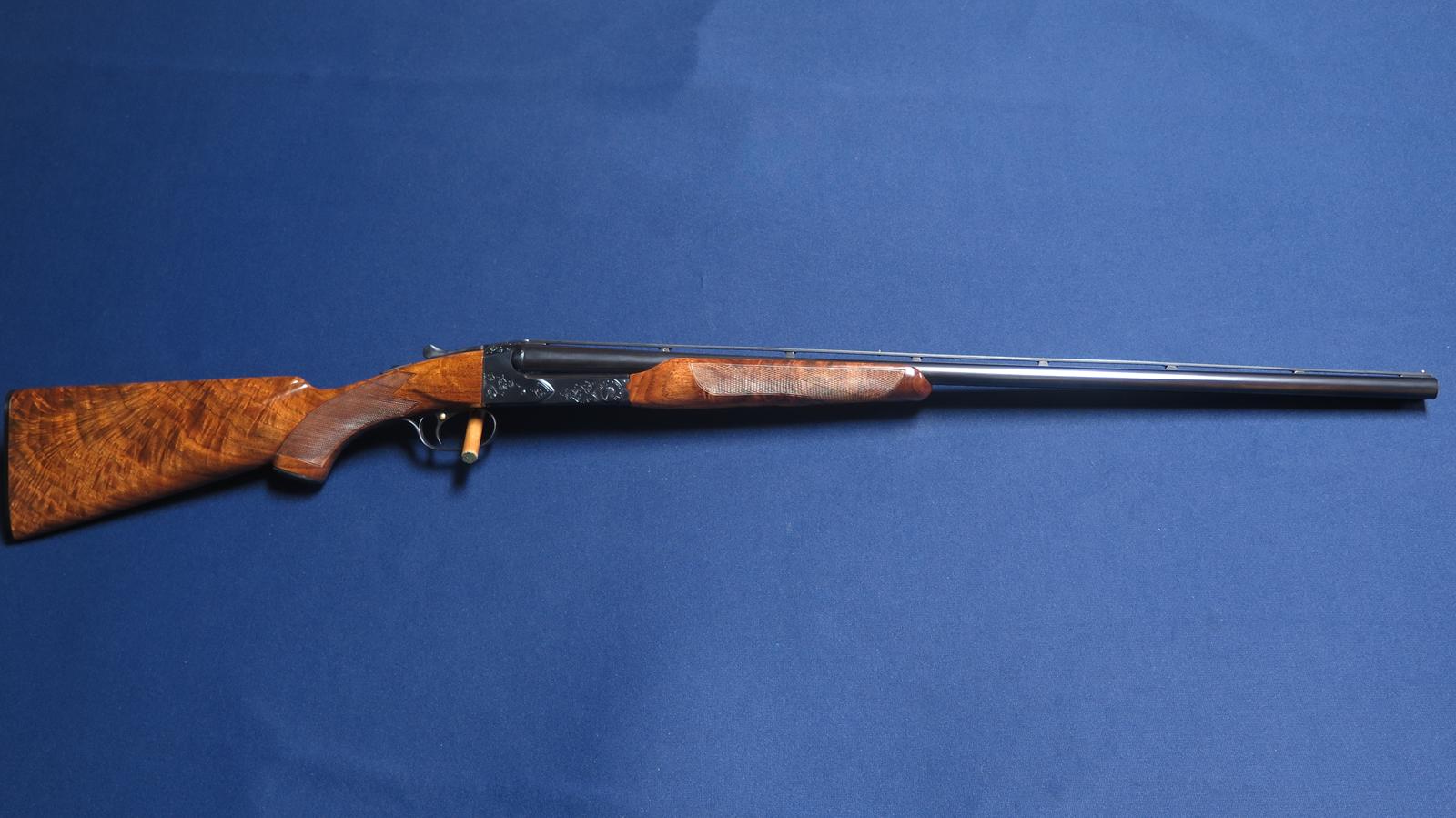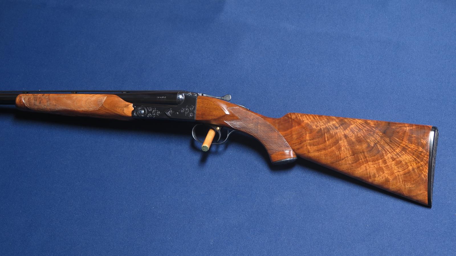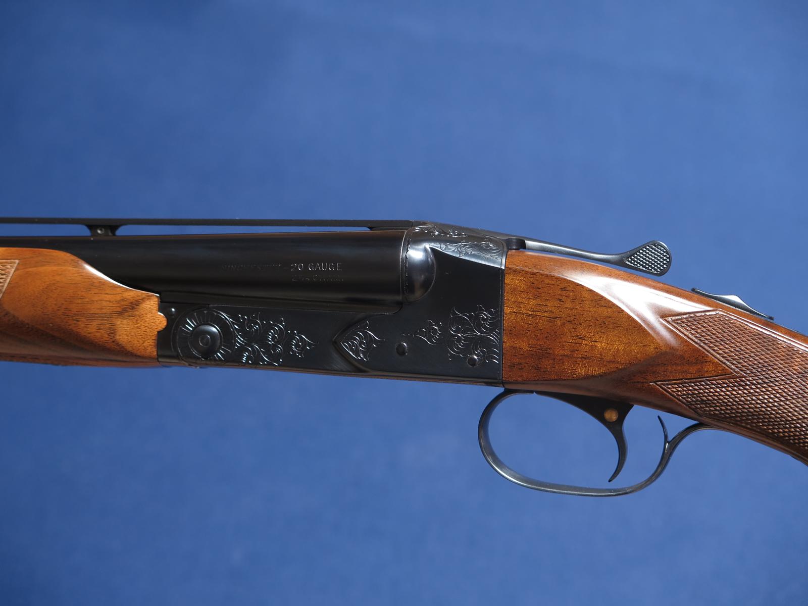 Winchester 21 20ga. SN 12,14X. #1 engraved. 28 inch barrels. Factory vent rib. Stamped Mod and Full but measures .008 .025. S.S.T. Ejectors. 14 1/8 LOP. 2 3/4 chambers. All matching serial numbers. Beautiful grain in wood. Excellent overall condition.