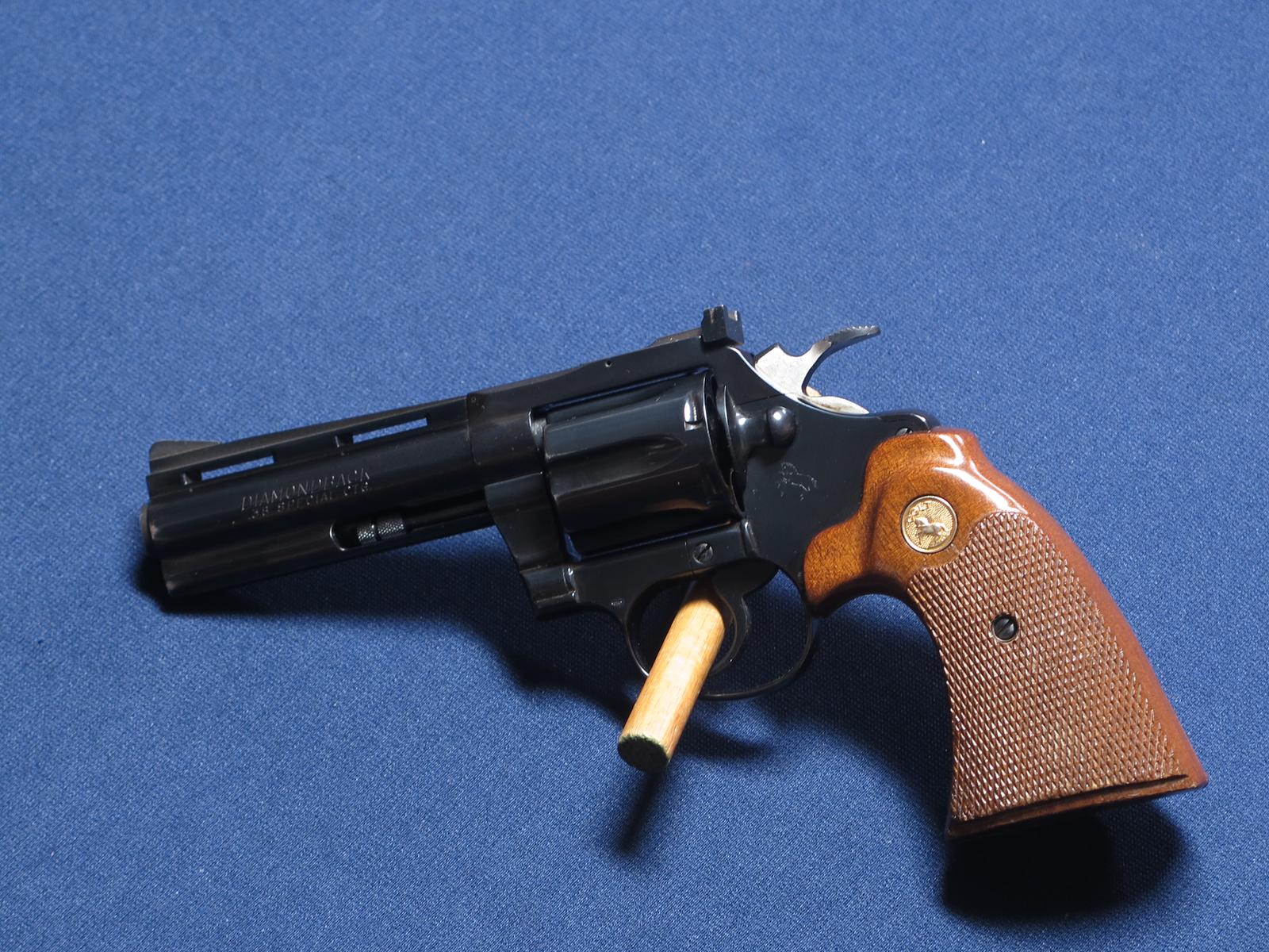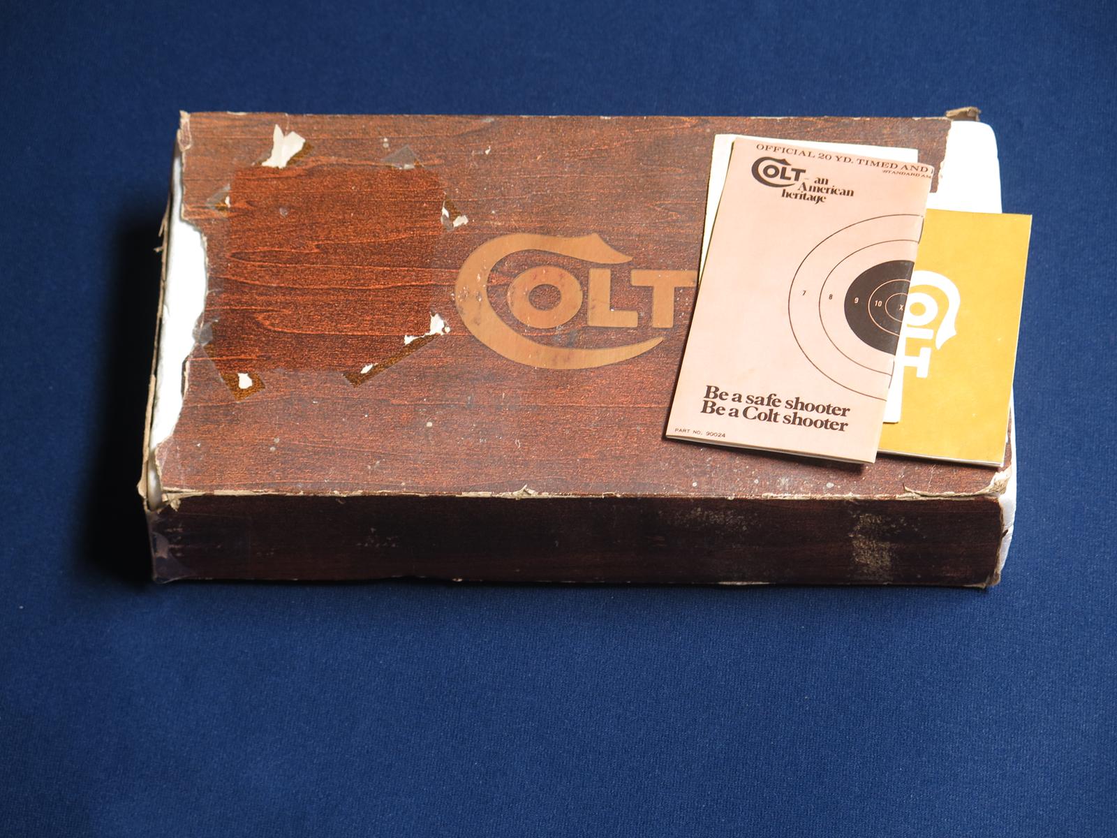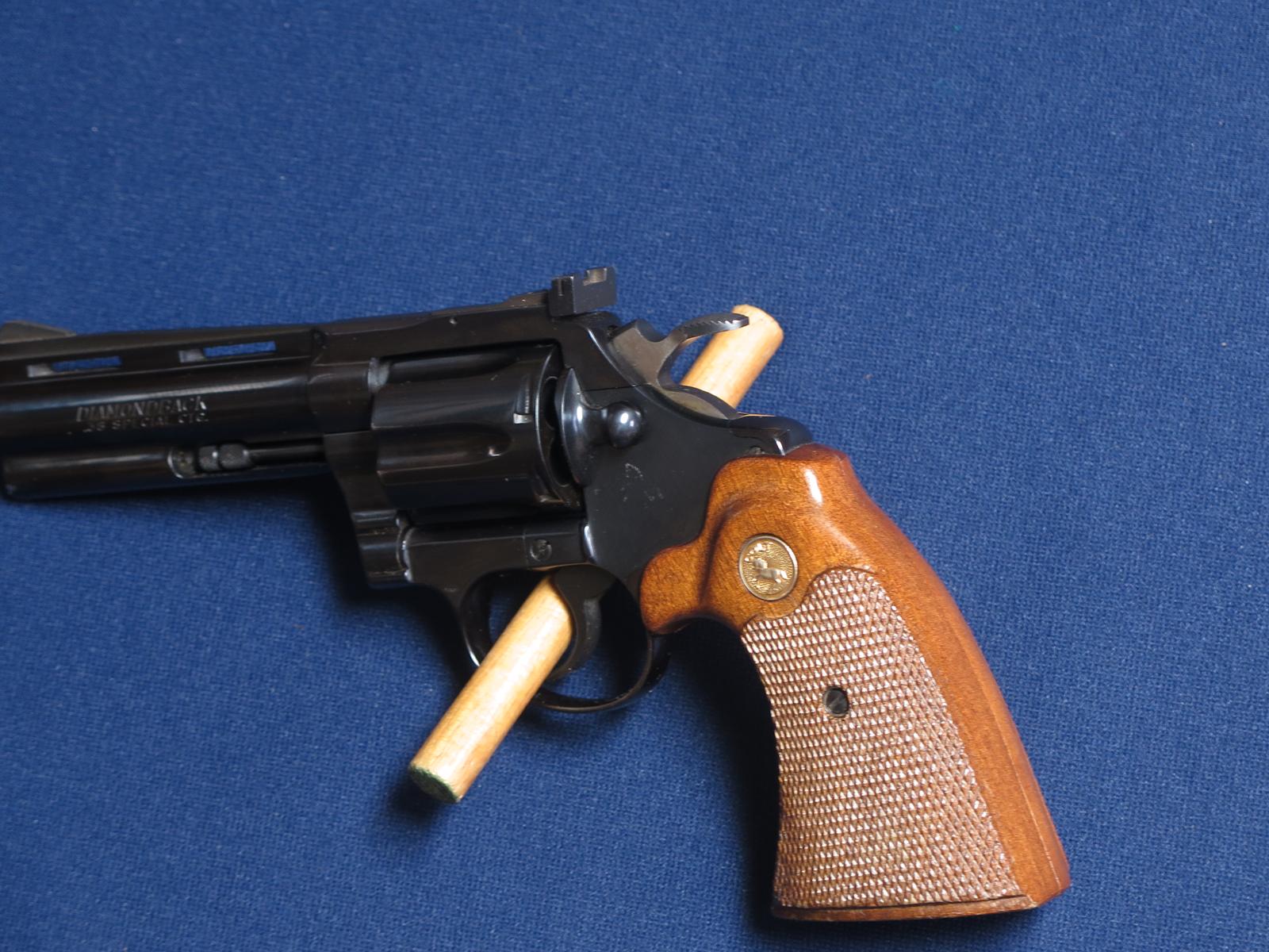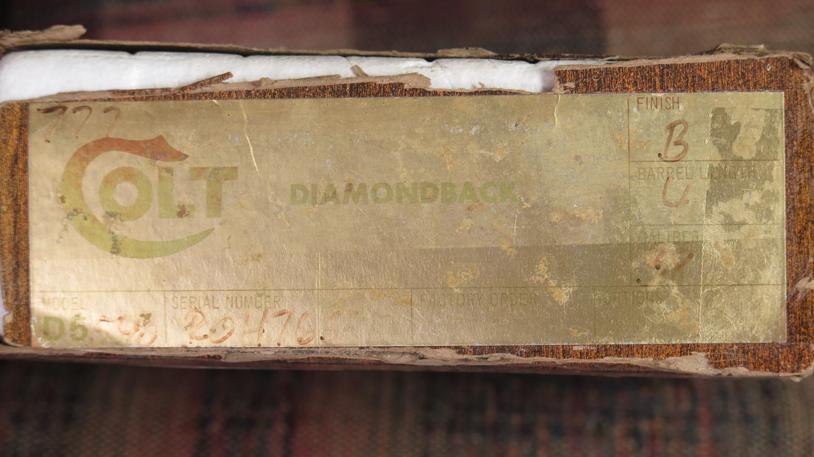 Colt Diamondback 38 Special. SN R0476X. 4 inch barrel. 97%. Just showing slight edge wear on cylinder and end of barrel. With box and manual. Box shows wear.