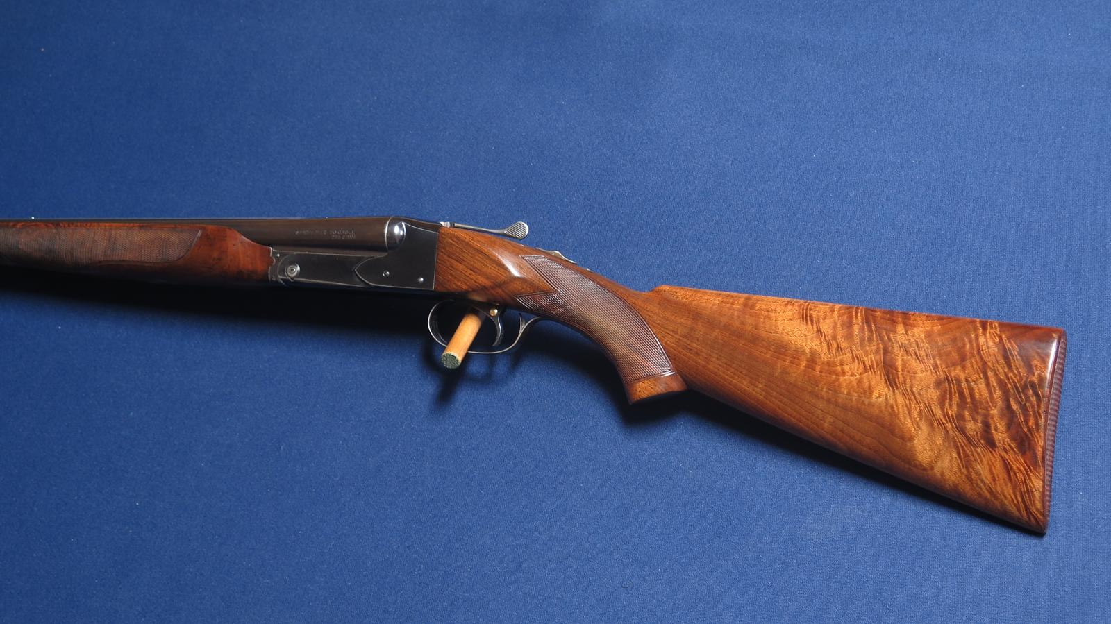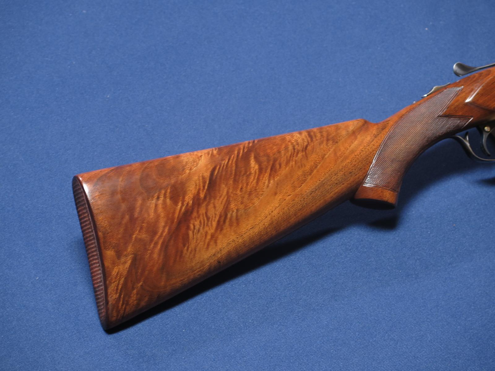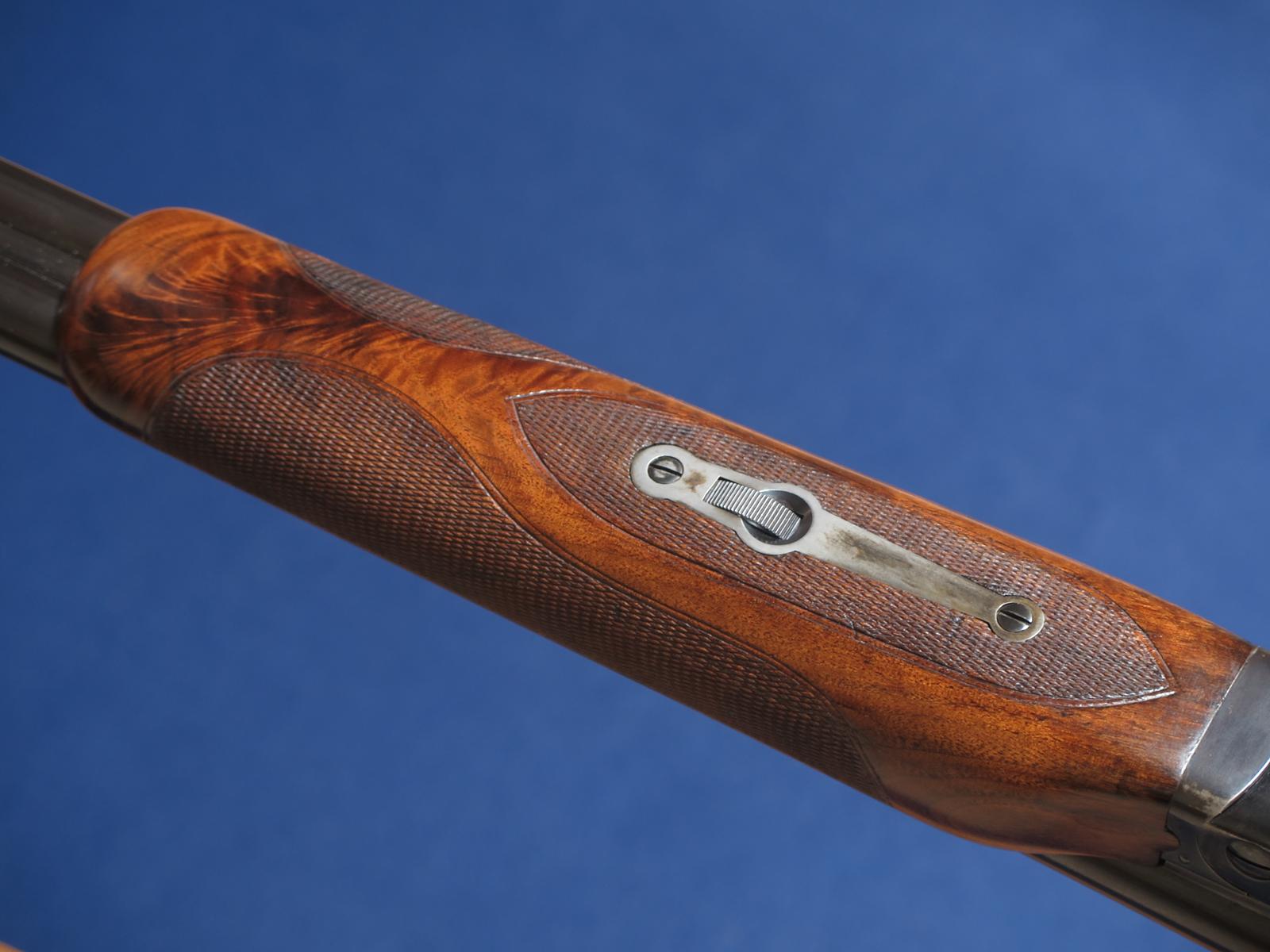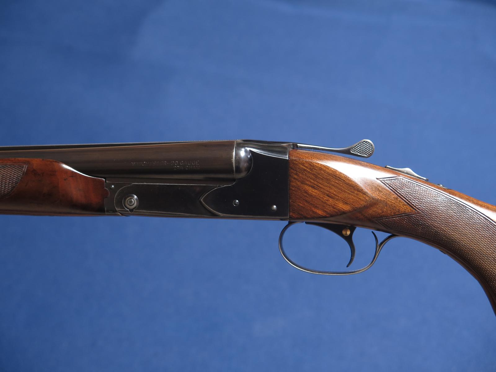 Winchester 21 Skeet 20ga. SN 14,11X. 26 inch barrels. WS1 WS2 chokes. .003 .009. Beavertail forearm. 14 inch LOP checkered butt. Ejectors. All matching serial numbers. Shows some blue loss on receiver edges, bottom of receiver and forearm metal. Action is tight. Excellent bores.