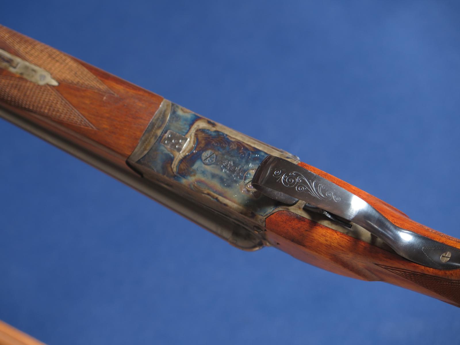 Merkel 8 12ga. 28 inch barrels. Full and Full. .039 .048. Double triggers. Extractor. 1977 mfg. Cheek piece with Monte Carlo. 14 3/8 LOP. 2 3/4 chambers. In excellent overall condition. Excellent bores.